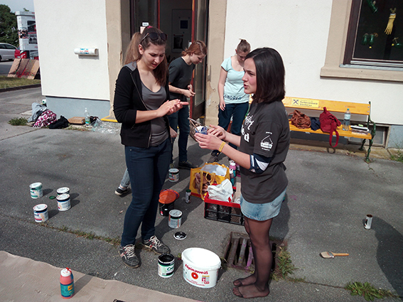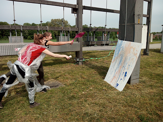 Am Samstag, den 9. Mai 2015, besuchten zwölf Schülerinnen der vierten Klassen von der HLW Hollabrunn das offene Atelier im ehemaligen Bahnhofsgebäude von Sierndorf (oasi), um im Rahmen eines Projektunterrichts großformatige Bilder zu gestalten. In rund sieben Stunden entstanden so acht dieser Werke, die ab Herbst im Rahmen einer Ausstellung in einem Eisenbahn-Zug vor der HLW Hollabrunn ausgestellt werden. Einige kleinere Kunstwerke rundeten den Tag ab. Für Schülerinnen und Schüler ist es wichtig, auch außerhalb der Schule aktiv künstlerisch tätig sein zu dürfen. Die ab Herbst 2015 geführte "Kreativwerkstatt" an der HLW wird diese Art von Unterricht noch intensiver ermöglichen und oft im oasi anzutreffen sein!