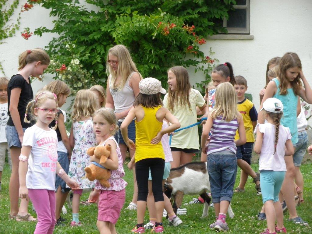 32 Kinder mit Eltern, am Eselhof der Halbwirts war der "Bär" los.