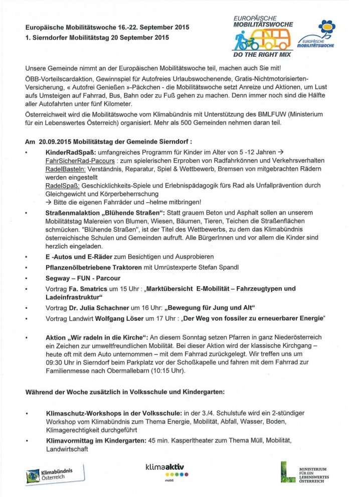 Unsere Gemeinde nimmt an der Europäischen Mobilitätswoche teil, machen auch Sie mit!