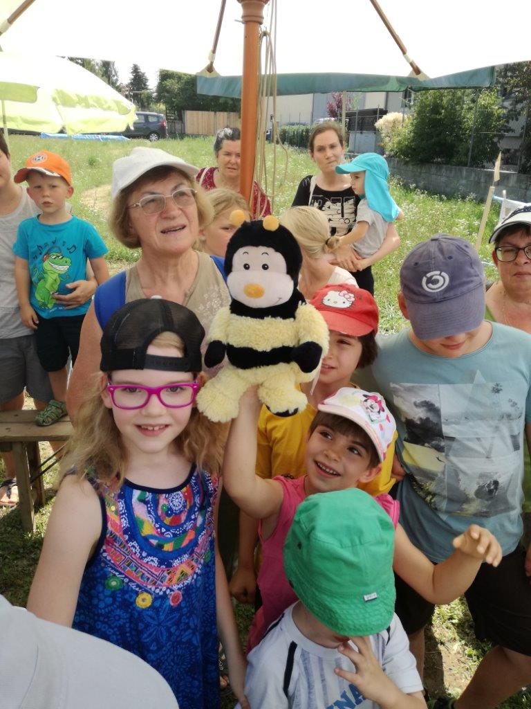 Nach längerer Pause fand bei herrlichstem Wetter ein Ferienspiel bei Fam. Bigel statt. Trotz großer Hitze kamen 20 Kinder zu unserem „Imker aus Leidenschaft“, diesmal spielte sich alles in einer eigens für diesen Tag eingerichtete Freiklasse ab.