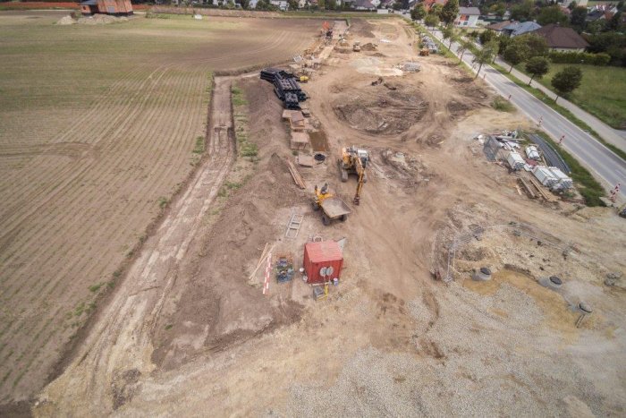 Endlich wieder normale Bodenbedingungen. Bau des Kanales und Wasser geht zügiger voran, leider jetzt eine Zwangs Pause von 3 Wochen. Überblicks Bilder vom zukünftigen Kreisverkehr und Erschließungsstraßen.