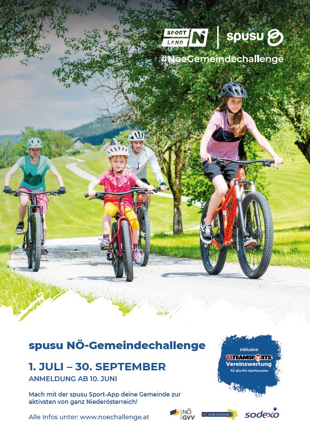 In dieser Zeit sucht SPORTLAND Niederösterreich in Kooperation mit spusu, den beiden NÖ-Gemeindevertreterverbänden sowie Sodexo mit der spusu NÖ-Gemeindechallenge bereits zum achten Mal die aktivsten Orte Niederösterreichs.