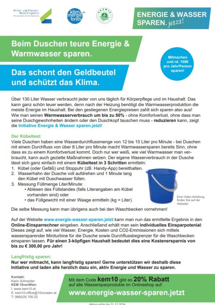 Mit dem Code kem10 gibt es 20% Rabatt auf alle Wassersparprodukte im Onlineshop auf: www.energie-wasser-sparen.jetzt