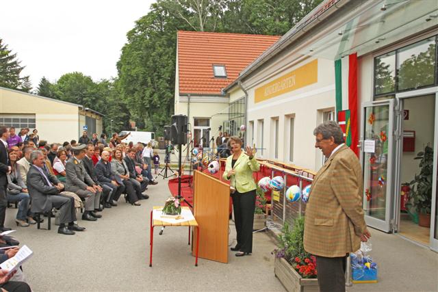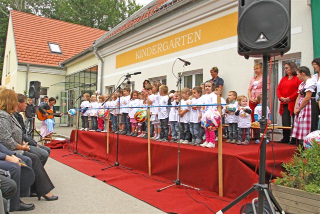 Zahlreiche Ehrengäste waren am 2. Juni 2012 nach Sierndorf gekommen, um mit den Kindern des Kindergartens, deren Eltern, den Mitgliedern des Kindergartenteams, den Damen und Herren des Gemeinderates und vielen GemeindebürgerInnen die Fertigstellung von zwei weiteren Kindergartengruppen in der Marktgemeinde Sierndorf zu feiern.