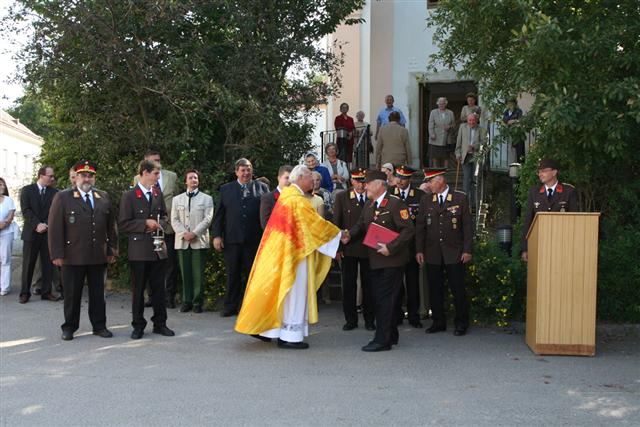 Nach der Fahrzeugsegnung zeichnete Landesfeuerwehrrat Heinrich Bauer den Kommandanten des Unterabschnitts Höbersdorf, HBI Karl Kleedorfer, mit dem Verdienstzeichen 3. Stufe des Bundesfeuerwehrverbandes aus.