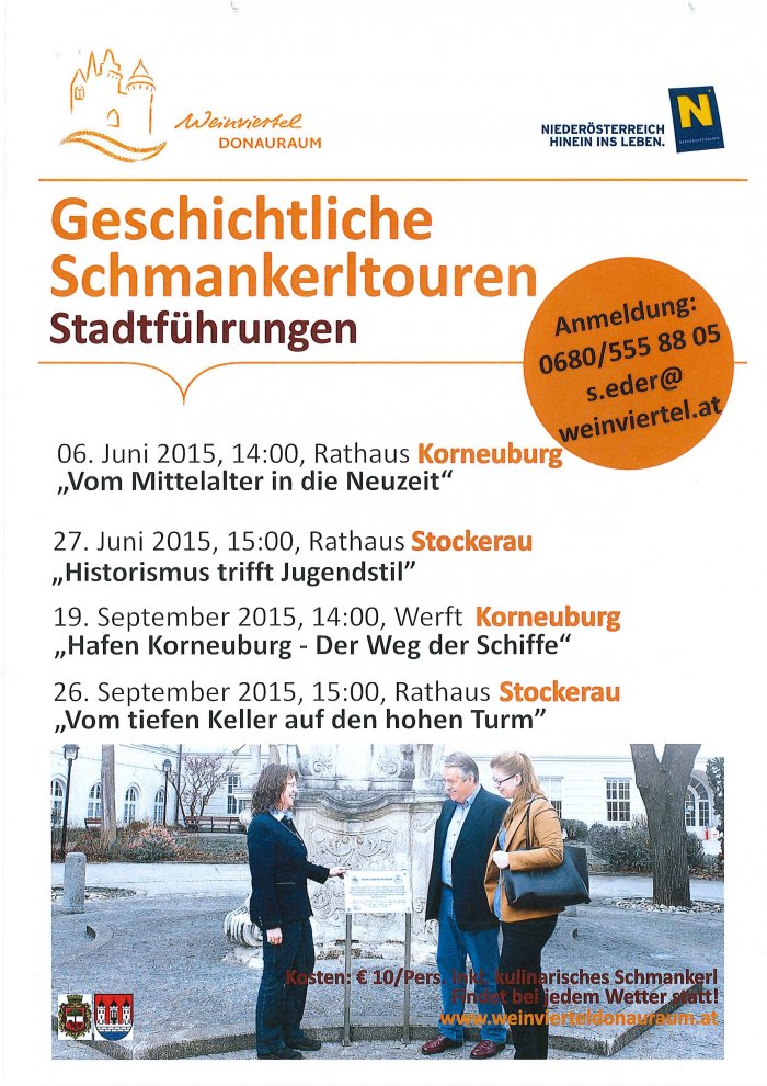 06.06.2015 - 14:00 Führung 1: 06. Juni 2015, 14:00, Rathaus Korneuburg "Vom Mittelalter in die Neuzeit" Details siehe bitte im Anhang! Datei stadfuehrungen_korneuburg_und_stockerau_plakat.pdf stadtfuehrungen_korneuburg_und_stockerau.pdf Bereich Veranstaltungen