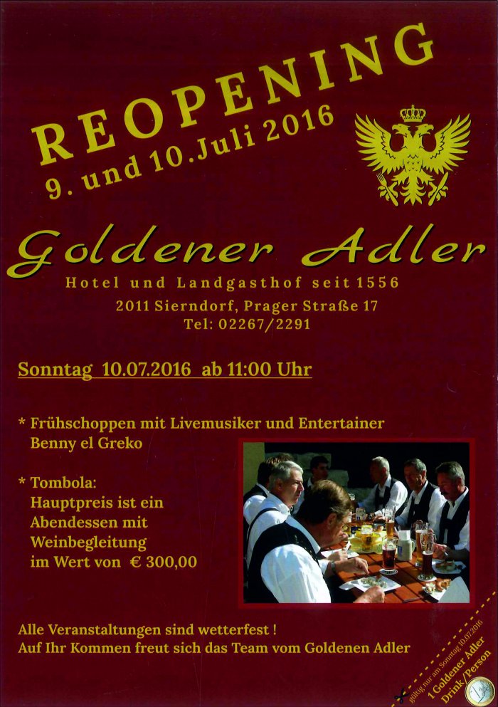 10.07.2016 - 11:00 Neueröffnung 9. und 10. Juli 2016 Details siehe im Anhang! Bereich Veranstaltungen