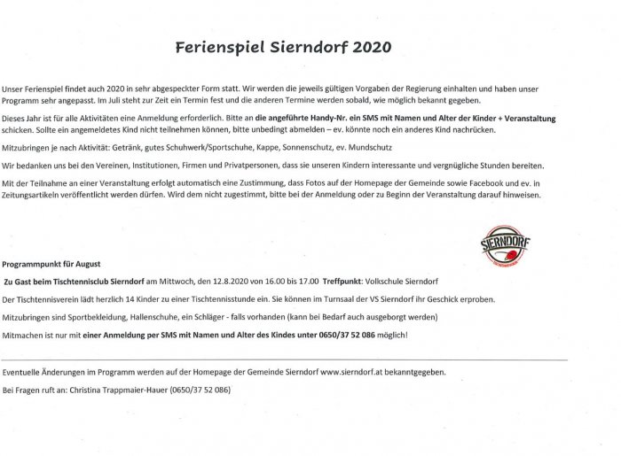 12.08.2020 - 16:00 bis 17:00 Mitmachen ist nur mit einer Anmeldung per SMS mit Namen und Alter des Kindes unter 0650/37 52 086 möglich! Bei Fragen ruft an: Christina Trappmaier-Hauer (0650/37 52 086) Bereich Veranstaltungen