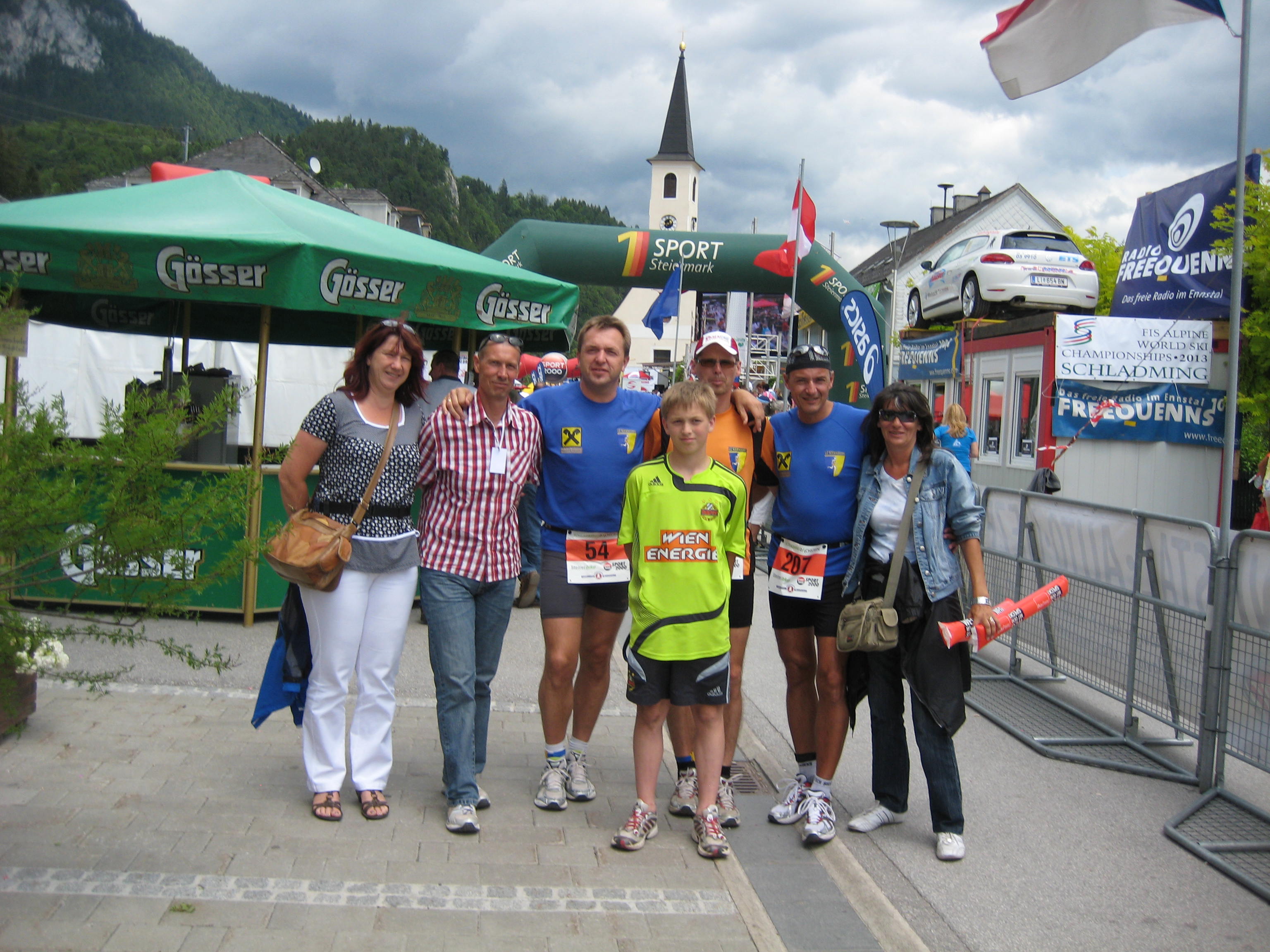 Insgesamt waren ca. 1600 Läufer/innen angemeldet wobei für Einzelläufer schon länger ein Anmeldestopp ausgesprochen war. Nach der Läuferbesprechung um 12:00 Uhr nahmen wir noch einen Happen zu uns und fieberten dem Start um 14:00 Uhr entgegen. Da unser Sektionsleiter Günter Kubesch aufgrund eines Trainingsunfalls verletzt war, kam er gemeinsam mit seiner Gattin Ingrid nach Wörschach um uns moralisch zu unterstützen.