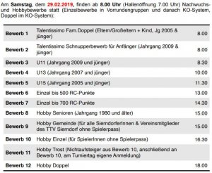 Der Tischtennisverein veranstaltet am 29. Februar ein Tischtennisturnier mit zahlreichen Hobby-Bewerben.