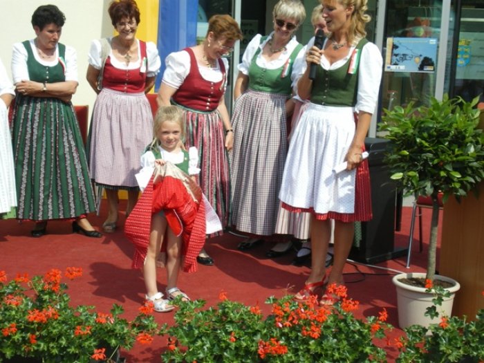 2010 wieder beim Herbstfest – bei dem ebenfalls wieder viele schöne Trachten zu bestaunen waren – erfuhr ich vom Dirndlnähkurs, den Frau Regina Eckerl organisierte. Ich erzählte ihr von meiner Idee, und gemeinsam mit Frau Eckerl, die das Organisatorische übernahm, wurde die Sierndorfer Alltagstracht Wirklichkeit.