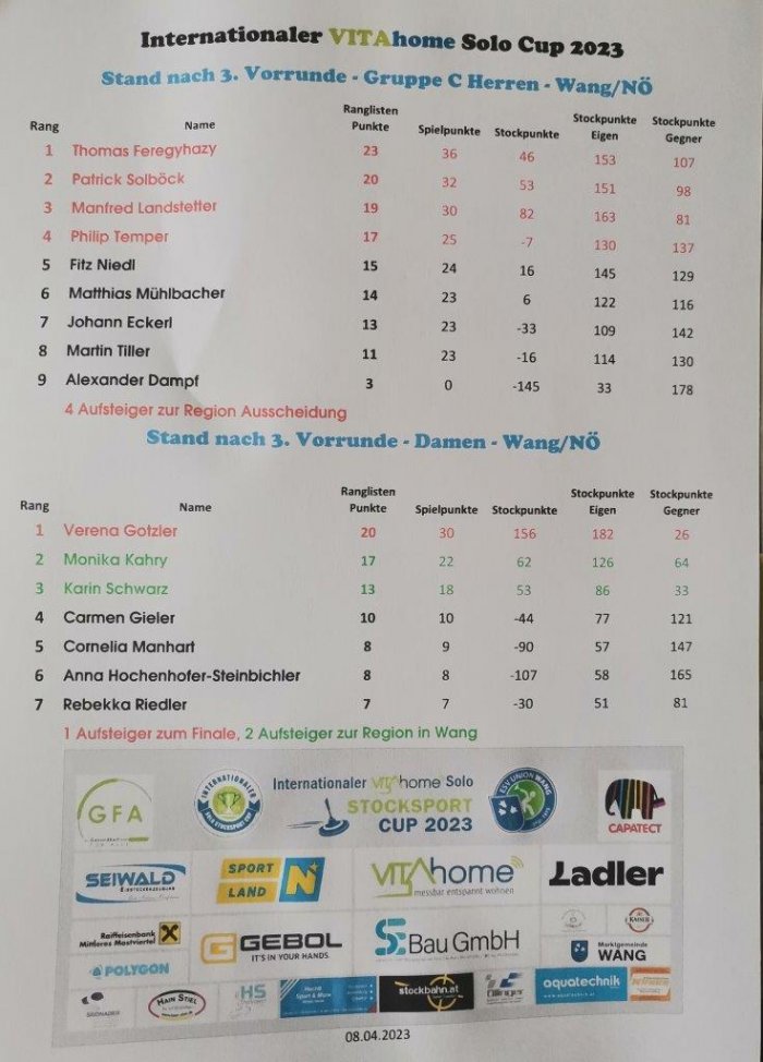 Nach 3 Turnier-Vorrunden erreichte Martin Tiller den 8. Platz mit 23 Spielpunkten, und Johann Eckerl den 7. Platz mit ebenfalls 23 Spielpunkten. Auf den 4. Platz, und letzte Aufsteiger fehlten für beide nur lächerliche 3 Spielpunkte. Für ihr erstes Antretten konnten beide Topleistungen gegen Spieler die in Landes und Bundesligen spielen abrufen. Gratulation zu der hervorragenden Leistung.
