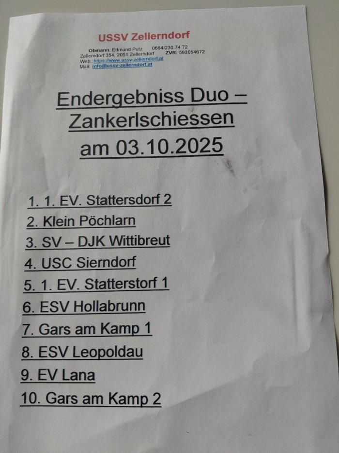 Beim Zankerl Duo Turnier in Zellerndorf konnte die Mannschaft des USC SDierndorf mit Martin und EJ, die Vorrunde gewinnen. Bei den folgenden Final bzw. Kreuzspielen, passierten leider einige leichte Fehler, und so wurde es schlussendlich der 4. Platz.