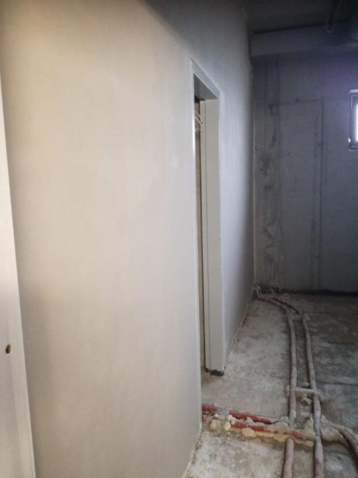 Feinverputzen der Zwischenwände 1.Bauabschnitt, und vervollständigen der Sanitärbereiche.