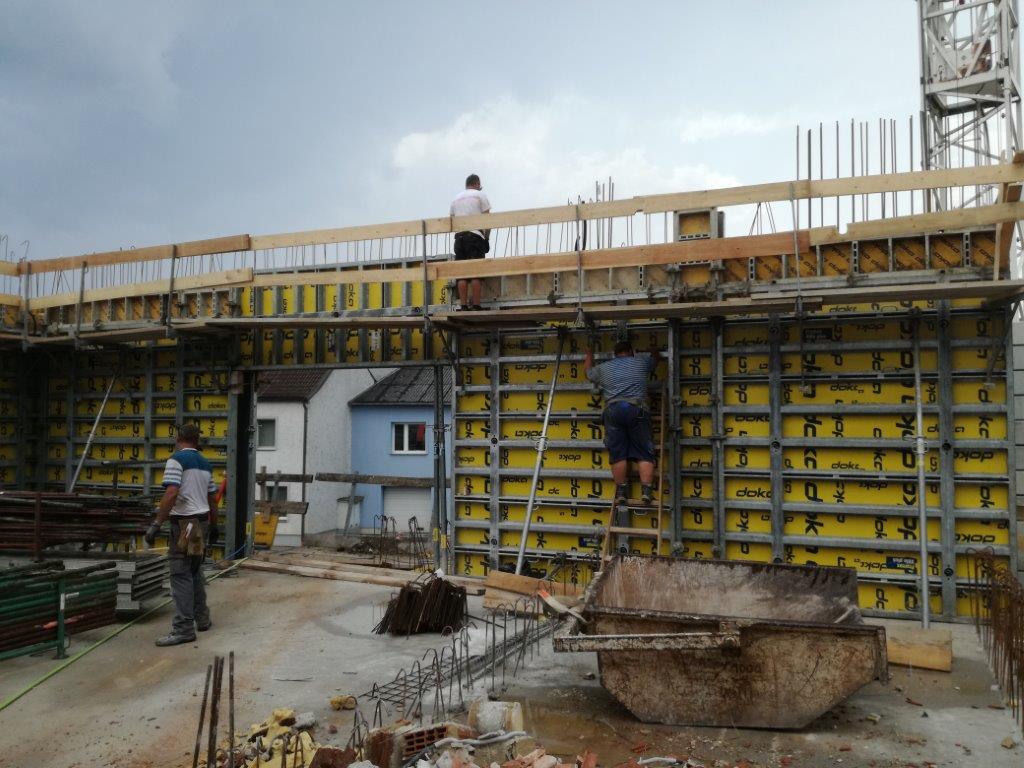 Schalungsbau 1 Stock im Bauteil2. Fertigstellen des Stiegenhauses zum Dachgeschoß (Technik). Tischlerarbeiten wie die Klassen-Türen und des Gastrobereiches. Stiegenaufgang in peppigen Designe.