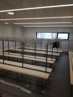 Bei den Verbindungsgängen sowie in den Umkleideräumen sind noch Malerarbeiten zu erledigen.