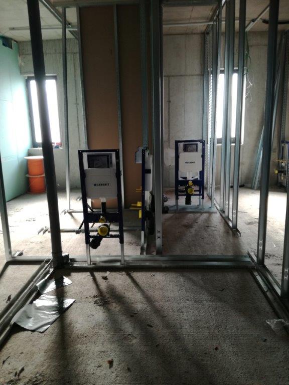 Sanitärgruppen im ersten Bauabschnitt werden aufgebaut.